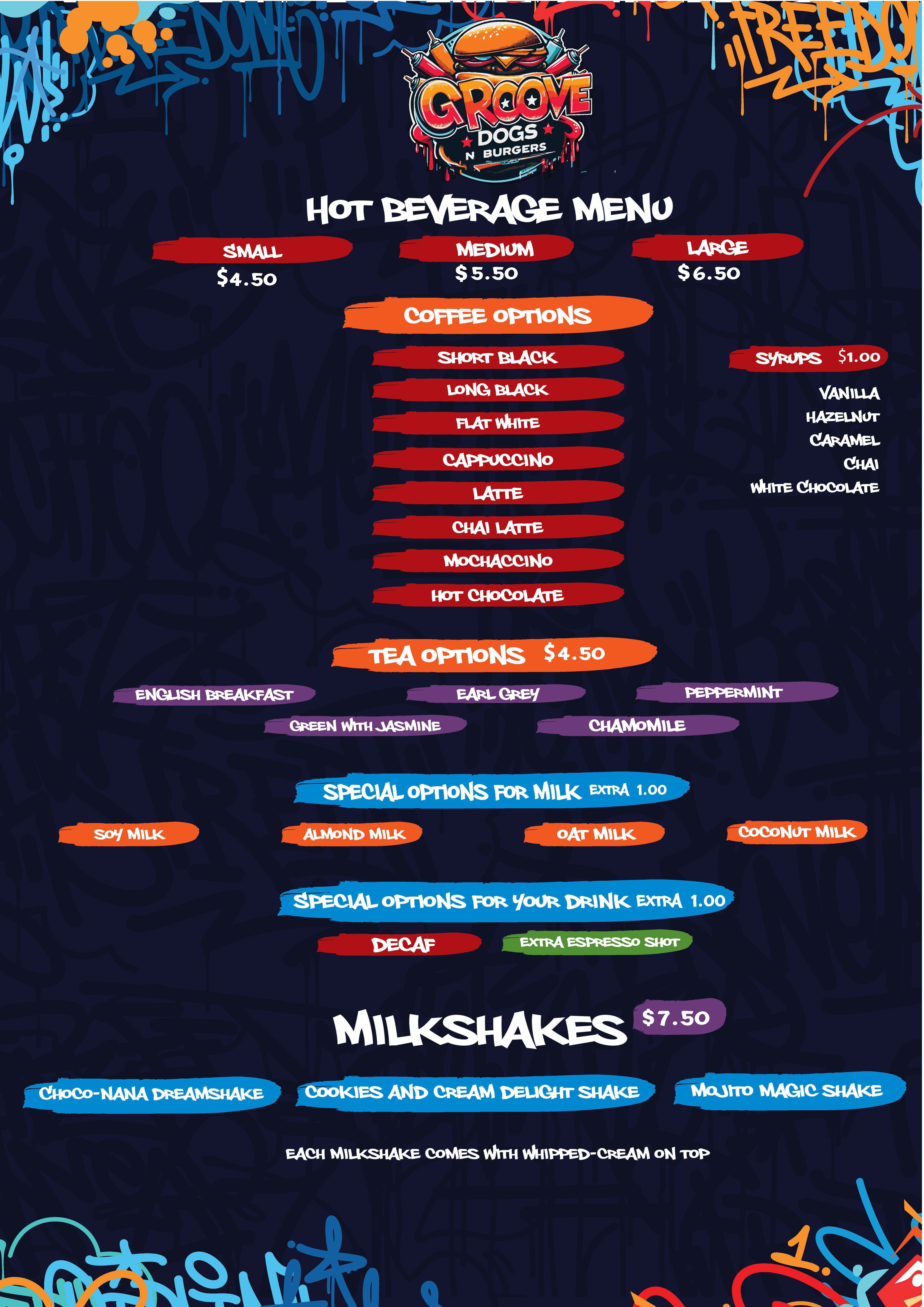Groove Dogs N’ Burgers Menu