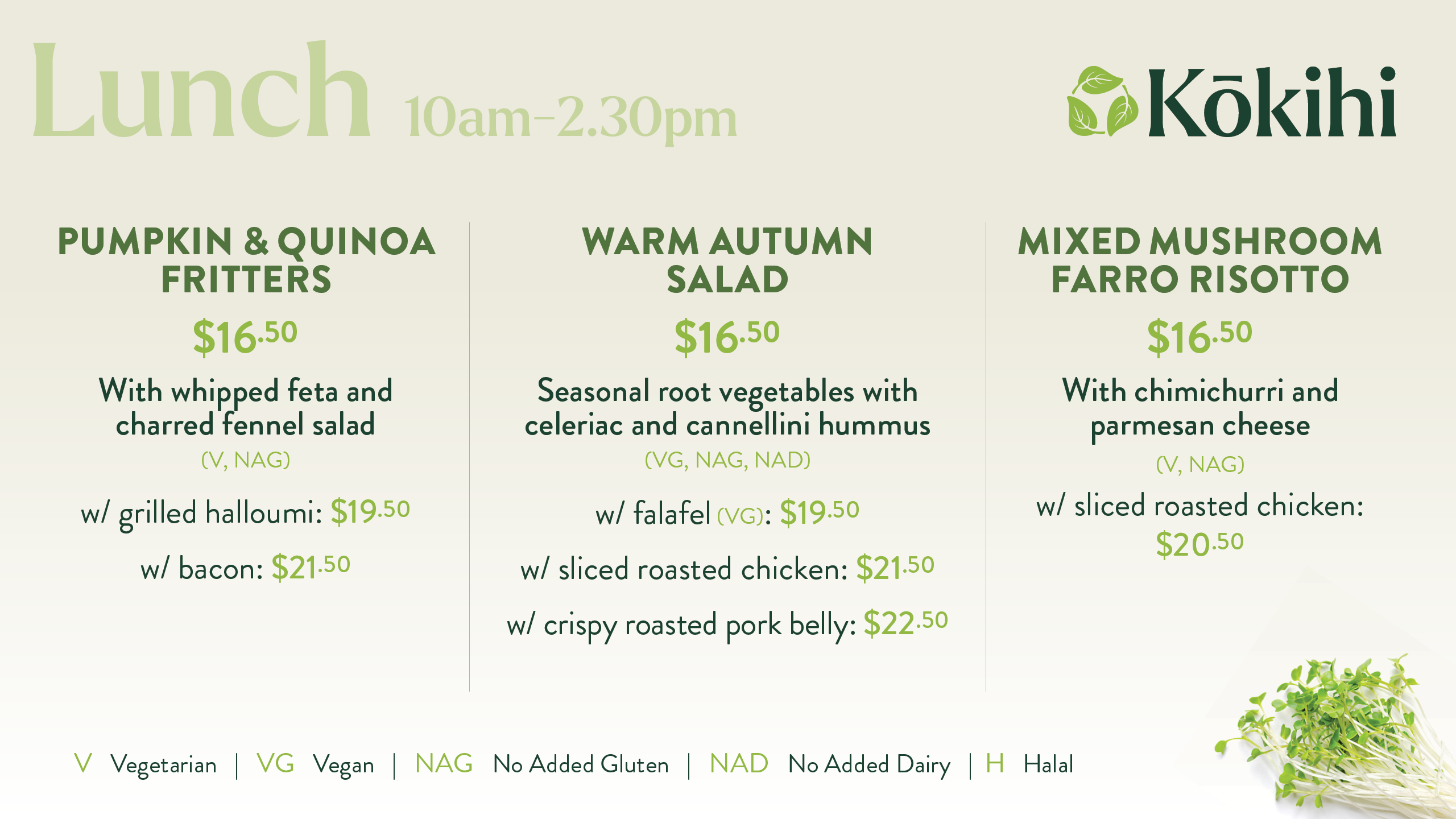 Kōkihi Café Menu
